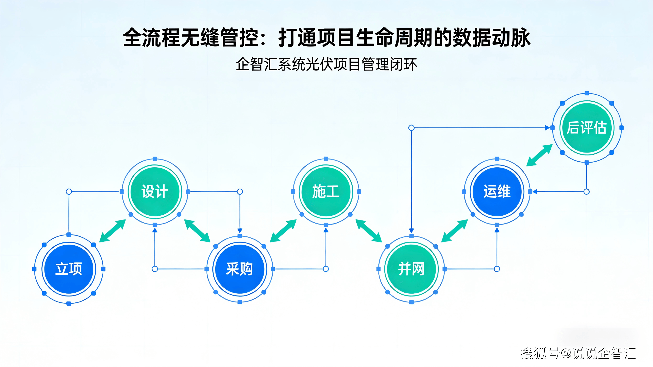企智汇系统以光伏项目全生命周期为主线,构建了贯通“立项-设计-采购-施工-并网-运维-后评估”的完整管理闭环。